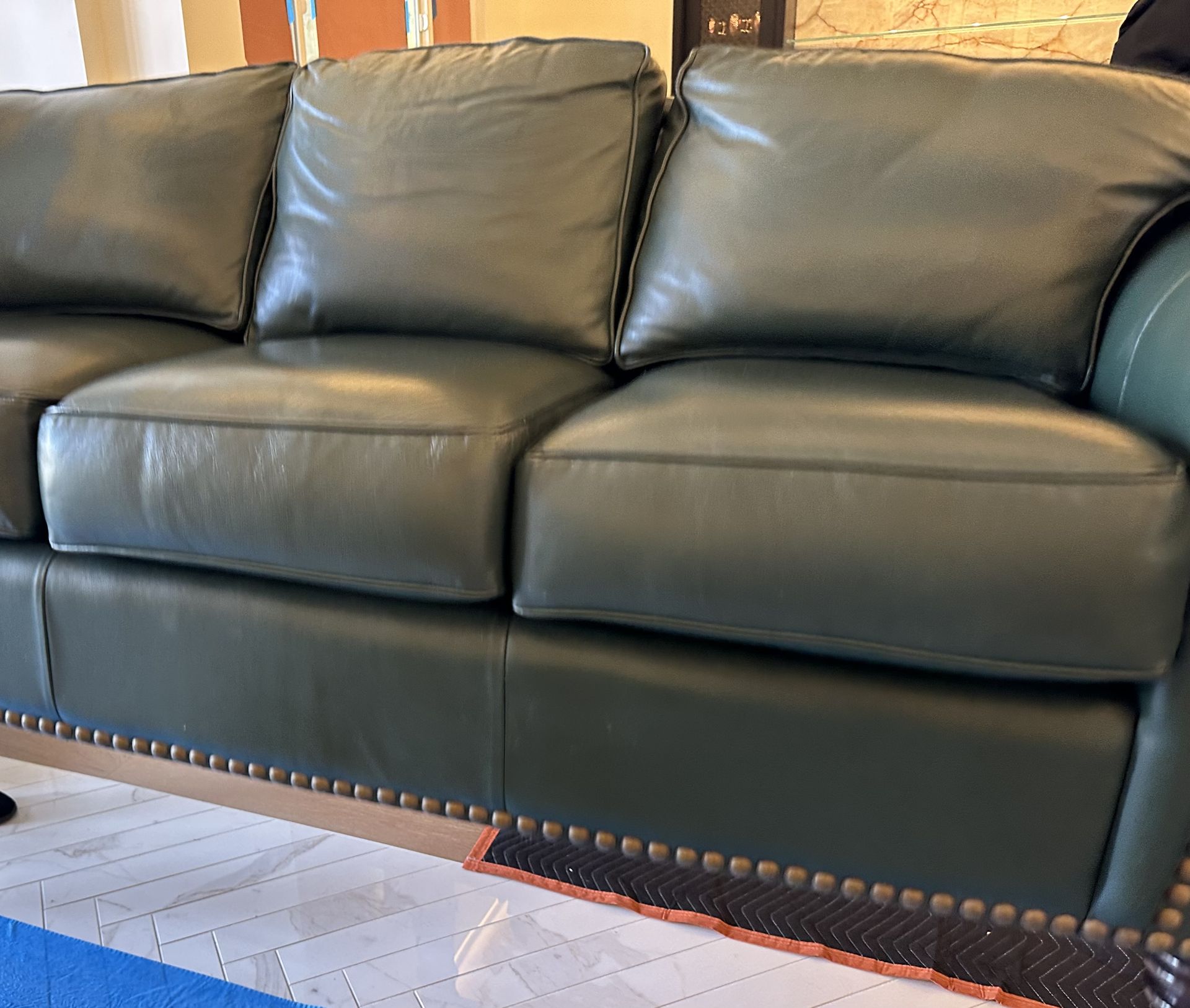Emerald/Forest Green Top-Grain Leather Sofa with Brass Nailhead Trim
