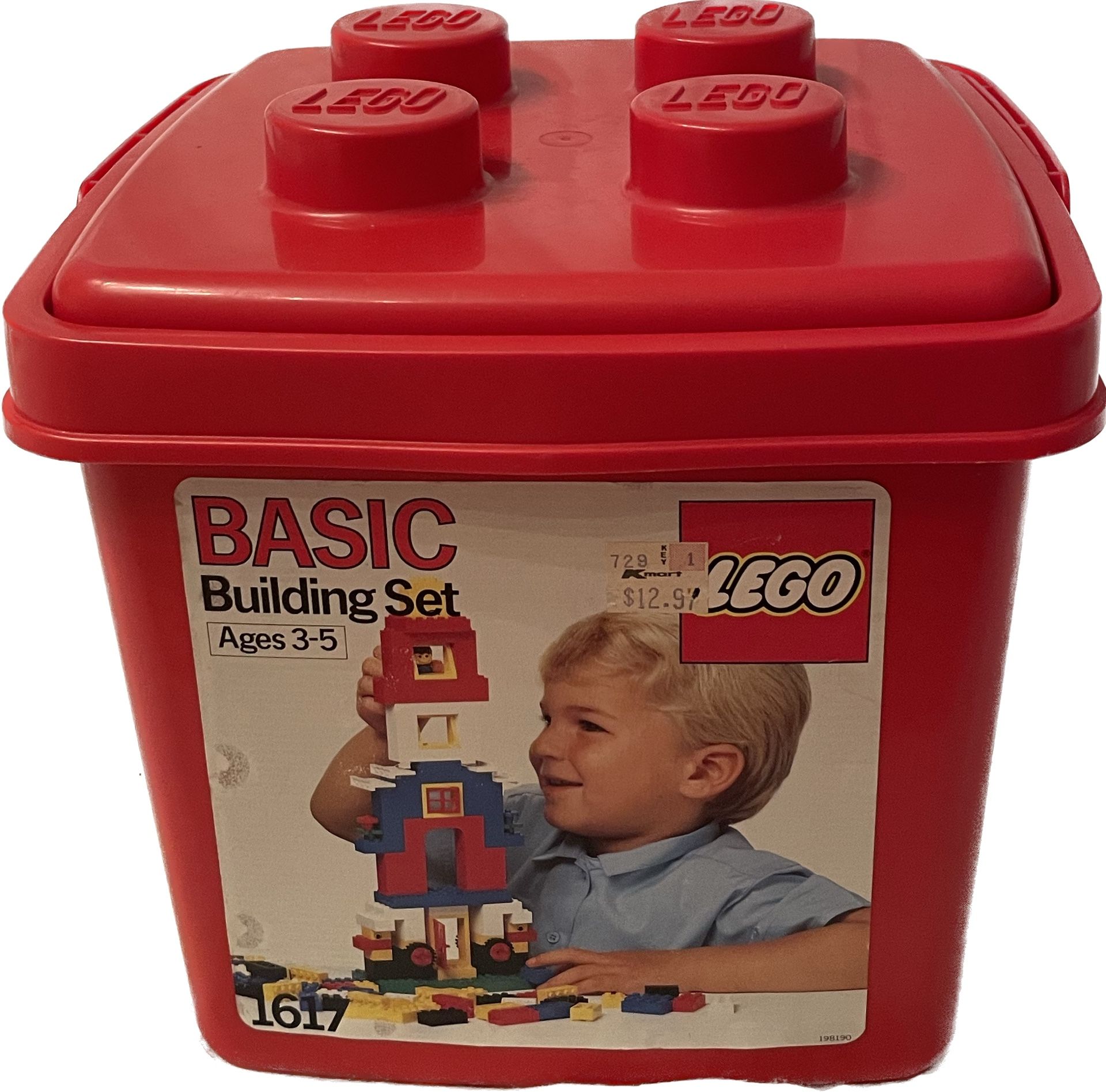 LEGO 1617 Small Bucket was a 149 piece Basic set with 1 minifig released in 1988. It was packaged in a red plastic bucket. Small Bucket contains 1 minifig, normal wear.