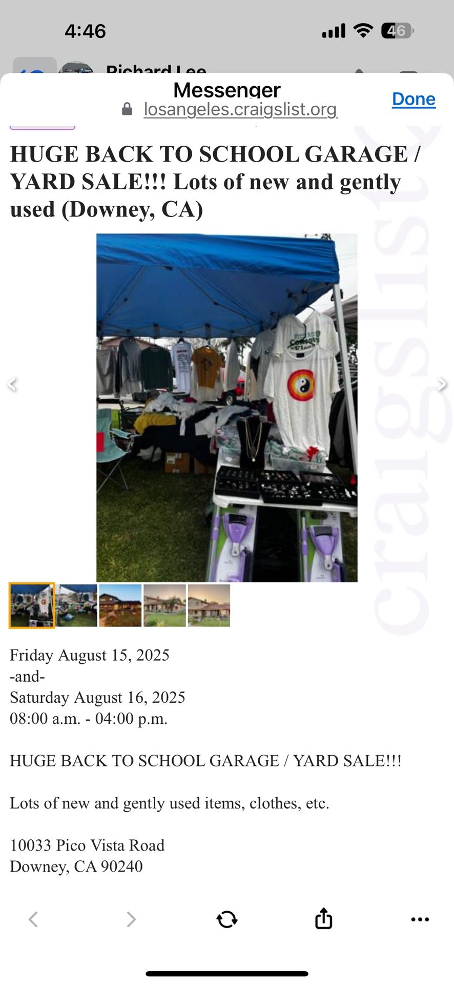 Yard sale Friday and Saturday from 8:00 A.M to 4:30 P.M A lot of new clothes , watches, shoes, Etc. Everything it’s a very low price.