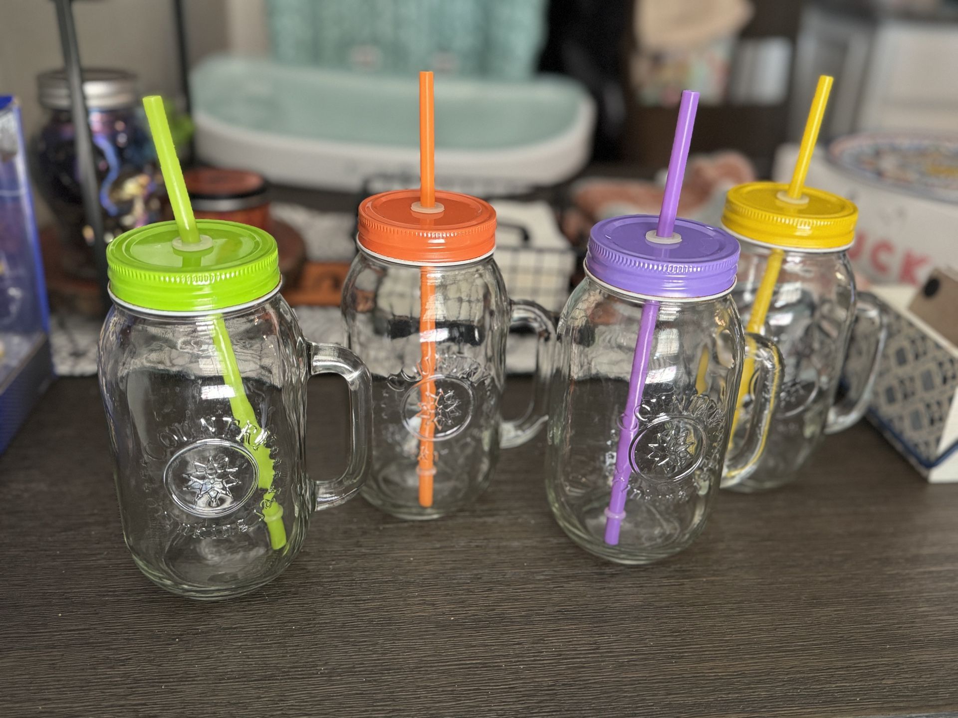 4 Mason Jar Cups With Handle