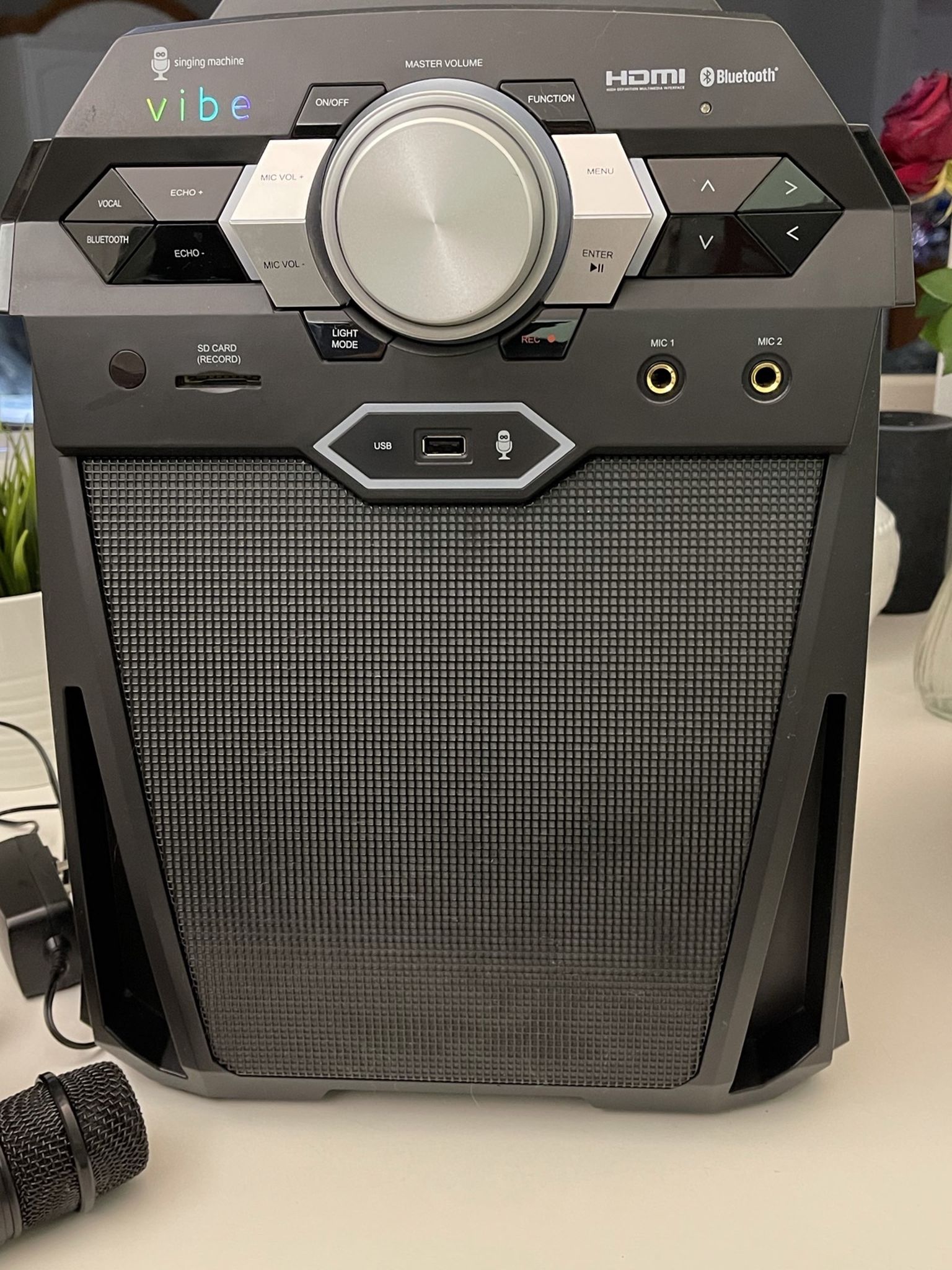 Karaoke singing machine in very good condition. HDMI and Bluetooth connection. Barely used. Works perfect. I’m selling it because I got another one. It comes with 2 microphones.