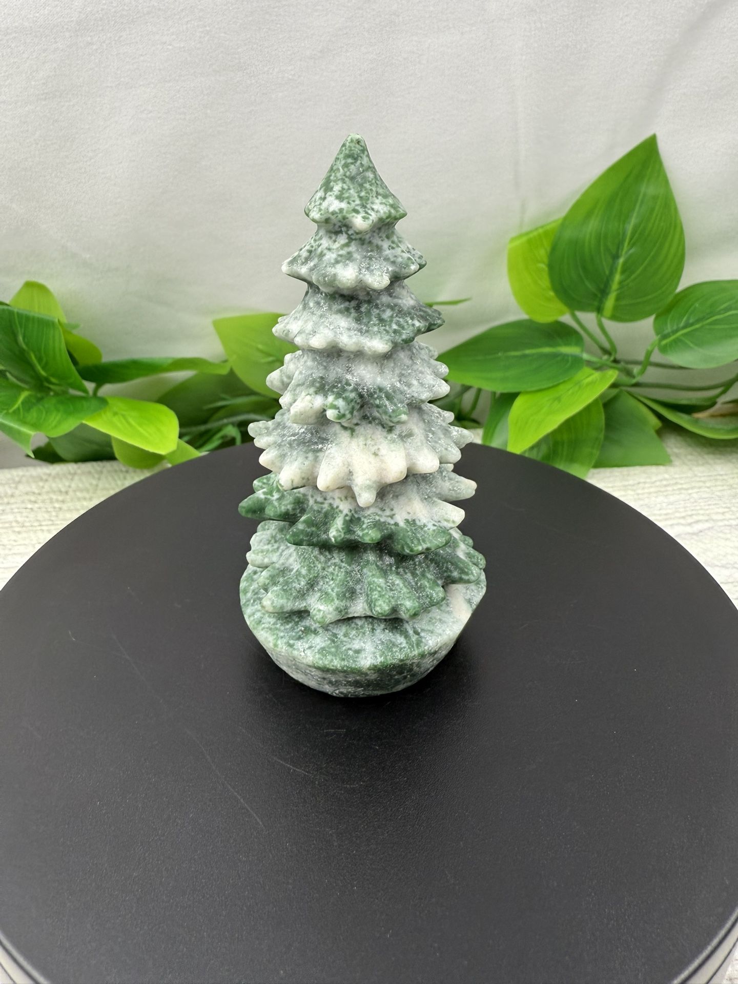 Beautiful crystal pine tree with snowy tops made out of tree agate. Natural crystal carved as a tree, good crystal decoration, gift or display piece. Approx: 3.51” tall 1.71” wide and 151g/5.32oz Payment methods: Cash, Venmo, PayPal Local meet up 98092, no holds. message me for any requests Check out my other listings if you love crystals 💕 CRYSTALS CAN APPEAR LARGER IN PHOTOS THEN IN REAL LIFE. PLEASE REFER TO THE DIMENSIONS LISTED‼️