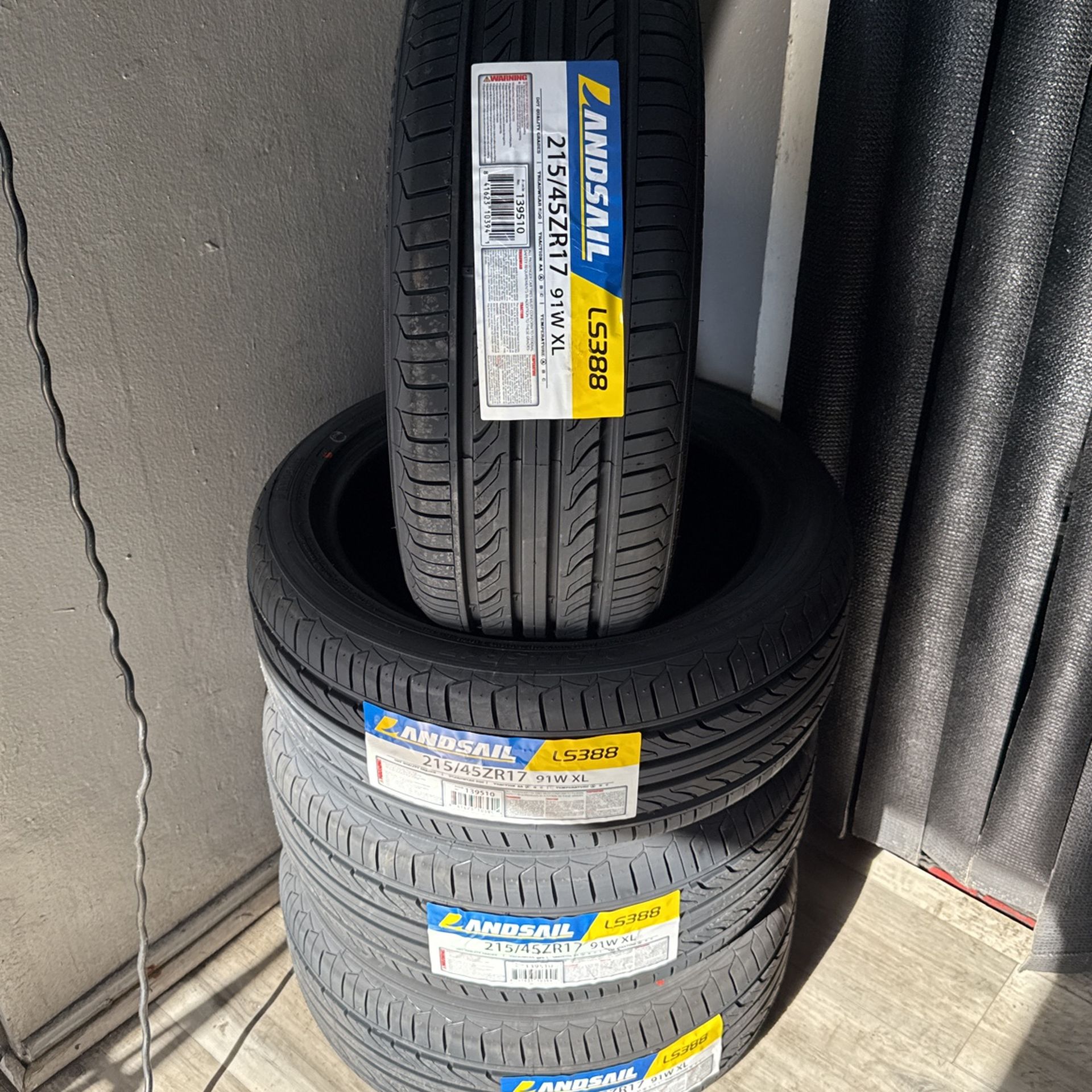 Set of 4 tires 215/45/17 NEW LANDSAIL LS388 $280 for all 4 free installation and balance included Excellent economical brand Wholesale price owners special 50k mile warranty