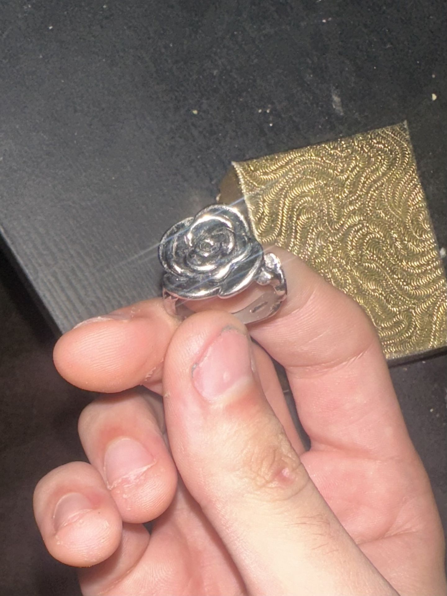 I have no clue what size, was an ex girlfriend’s ring that i no longer need. Lmk need gone asap.