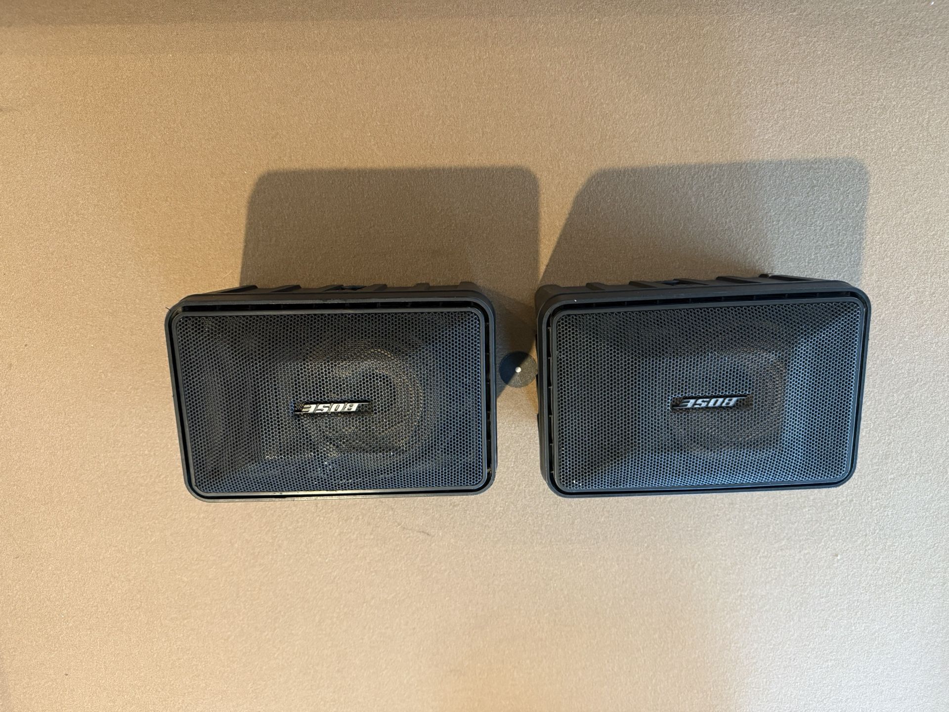 Pair of Bose 101 indoor/outdoor monitor speakers in very good condition. They sound great and are perfect for a garage or a patio.