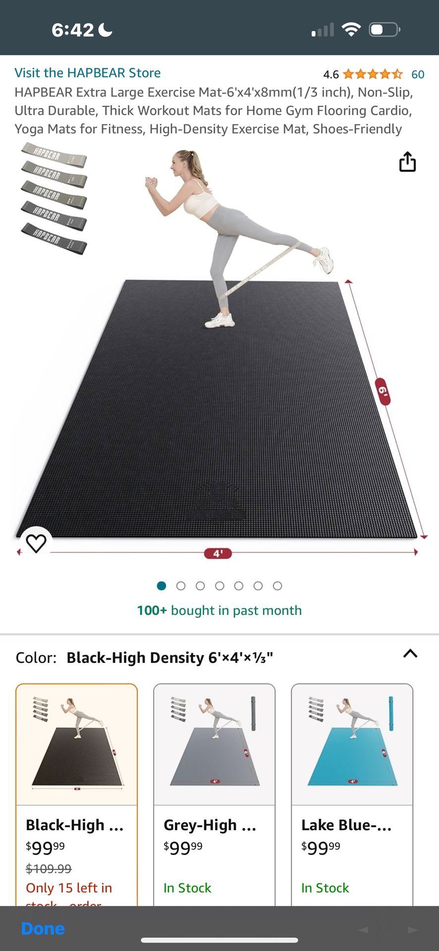 HAPBEAR Extra Large Exercise Mat-7'x5'/6'x4 x8(1/3 inch), Non-Slip, Ultra Durable, Thick Workout Mats for Home Gym Flooring Cardio, Yoga Mats for Fitness, High-Density Exercise Mat, Shoes-Friendly NewProduct Link*Retail Price: $ 109.99 https://offerup.com/redirect/?o=aHR0cHM6Ly93d3cuYW1hem9uLmNvbS9kcC9CT0JQUlNETDZa