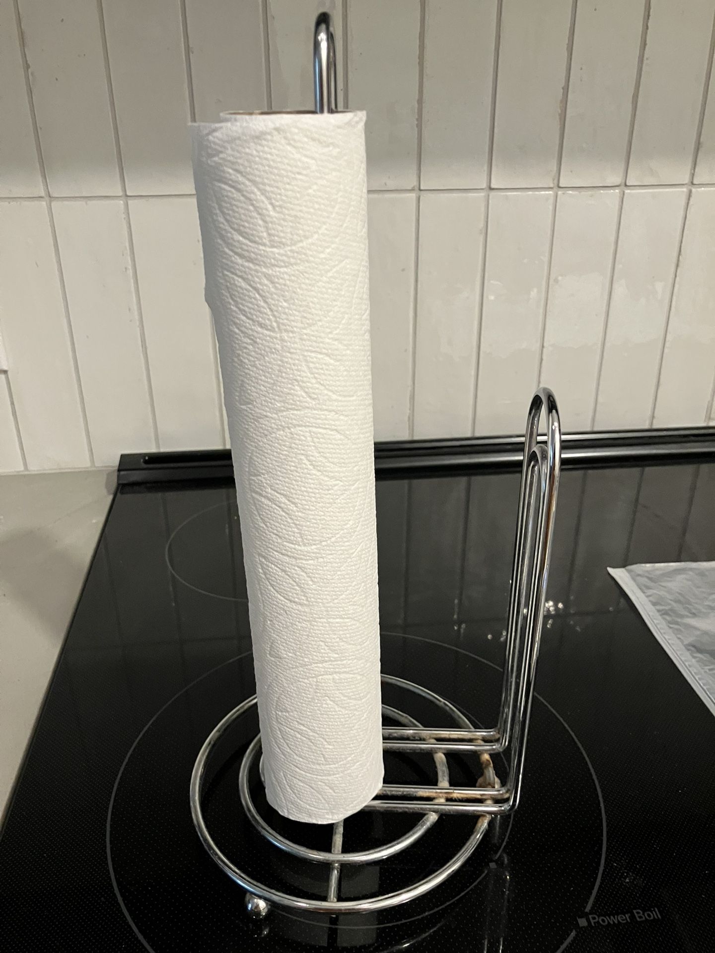 Very useful and nice vertical paper towel holder that you can put anywhere you want! Stands upright and has another section to hold napkins or other things like a roll of toilet paper, so it’s very practical.