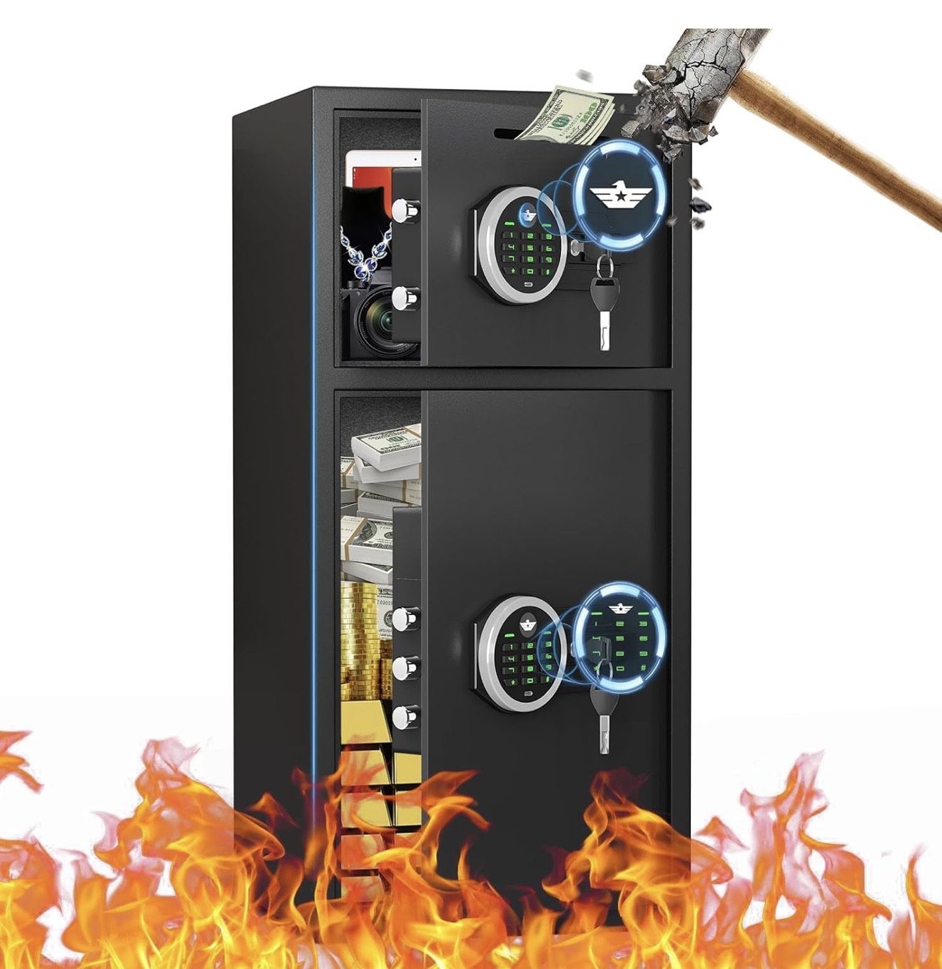 6.0 Cu ft Large Safe Box Fireproof Waterproof, Money Safe With Mute Function and LED Light, Digital Keypad Home Safes with Deposit Slot & Dual Alarm S