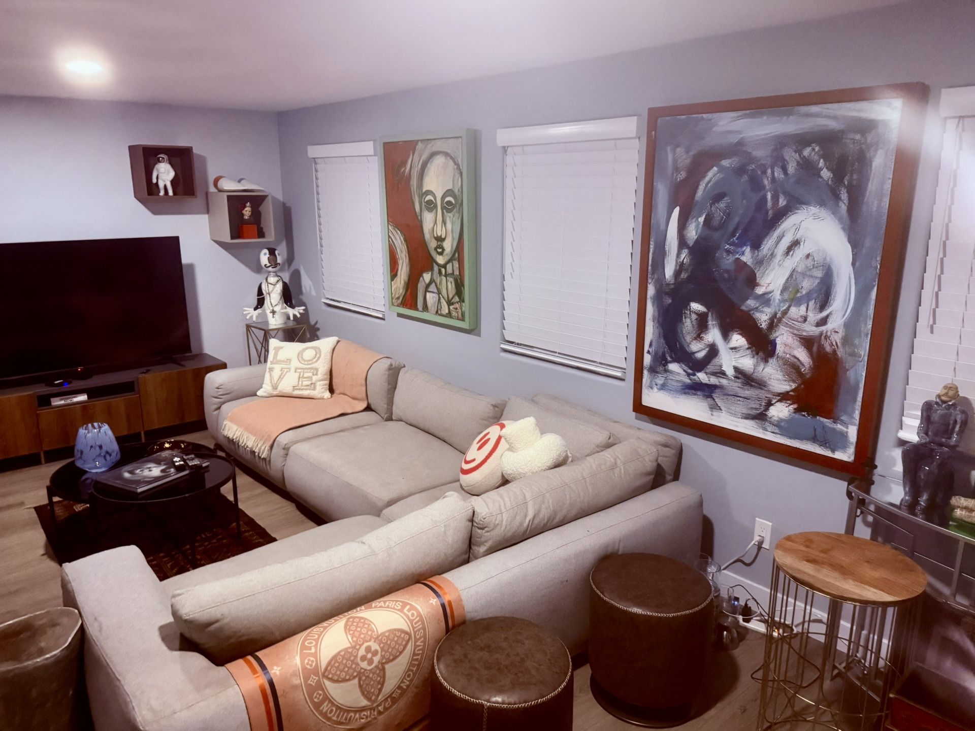 Spacious sectional sofa. Light gray fabric. Has comfy chaise lounge section. Plush cushions, great shape. Good for big living room setup. It would need to be picked up. I cannot deliver it.