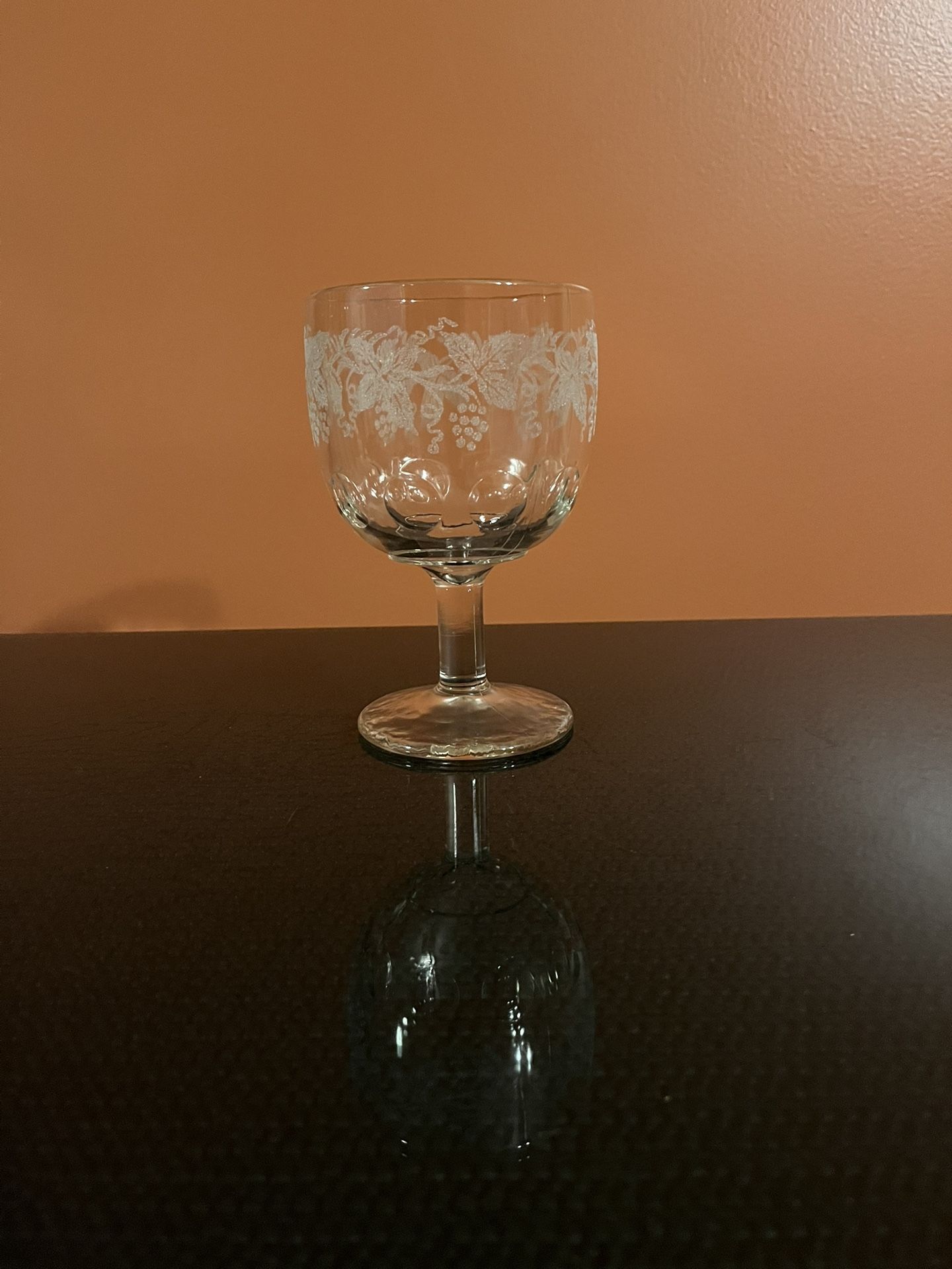 The Vintage Bartlett Collins Clear Glass Goblet is a stunning piece of elegant glassware from the 1940s to 1960s, featuring a unique grapevine thumbprint design. Handmade in Austria, this drink glass goblet boasts a round shape with a capacity of 14.5 fl oz to the brim. The clear glass with white etching and gold trim on the brim adds a touch of retro style, perfect for all occasions. This vintage original piece is a must-have for collectors and those who appreciate handmade craftsmanship and intricate details in their glassware. The glass has “thumbprint” detailing along the bottom of the bowl. The grapevine etching is raised, for the tactile seekers. Pickup is at a house near the college in the last photo, near downtown Woodstock. I have a houseful of things for sale here, so be prepared to spend some time to walk through if you so desire. Best offer. I am willing to deliver to a reasonable distance if you pay for my gas. I will need a deposit, if not full payment prior to my delivering. I am willing to ship if you pay for shipping. I will not hold any item without payment. I don’t require prepayment, and I can answer that it is pending pickup for most buy/sell sites, but if it happens to sell on eBay in the meantime, I must ship it to the buyer. That rarely happens, but it can happen.