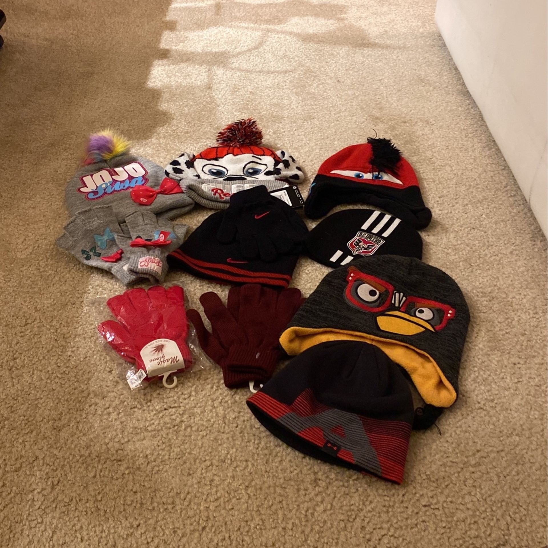 7 Kids Winter Hats, 4 Pairs Kids Gloves