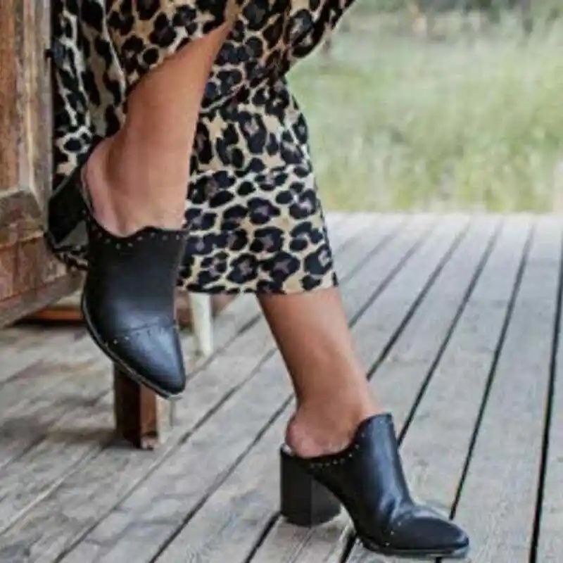 Report Black Women's Size 9.5 Mule Stud Ankle Boot Block Heel Faux Leather