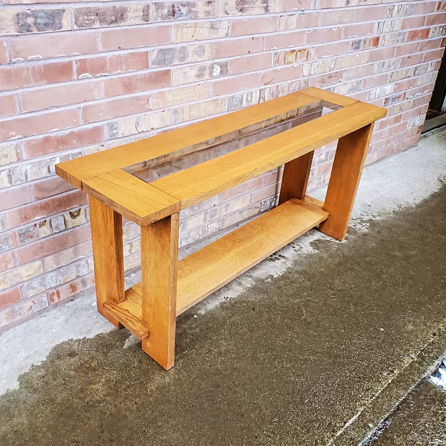 Mid Century Lane Oak and Glass Sofa Table, Console Table Or Entryway Table. In good condition, normal wear constant with age and use. Measures 56" wide × 16" deep × 26.25" tall. $150 Cash or Venmo. Pick up in Puyallup 98373.