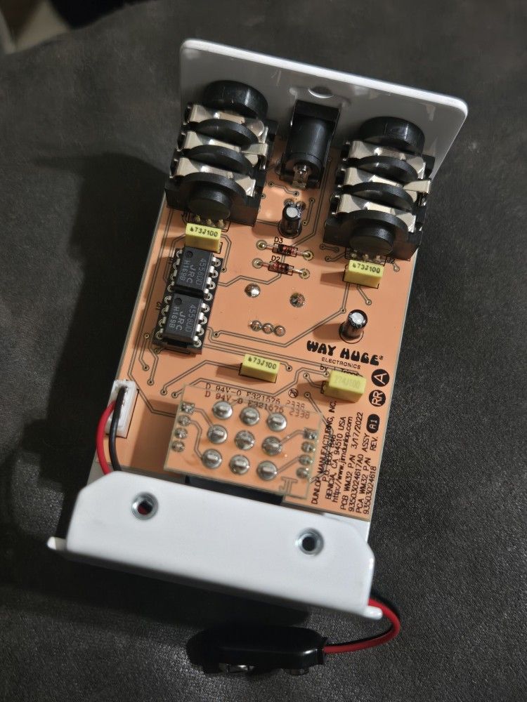Way Huge Geisha Drive 150 This pedal looks sweet, but it fights dirty. The Way Huge Geisha Drive isn’t just another boutique overdrive box — it’s a limited-edition art piece with a cherry blossom kimono and a blue LED that glows like it’s judging your tone. Underneath that soft exterior lives a snarling overdrive based on the Red Llama circuit, famous for its chewy, tube-like grit and ridiculous touch sensitivity. The three knobs (Volume, Tone, Drive) are all you need to go from smooth vintage breakup to filthy fuzzed-out madness. It reacts beautifully to your playing — dig in and it growls, back off and it purrs. It’s built like a tank, fully functional, LED bright, and ready to kick your amp square in the clean channel. Collectors love these because they were a short run, and you just don’t see them pop up often. Yours looks extra cool when lit up, so good luck pretending you’re gonna “just test it and list it.” Clean condition, works perfectly, priced right at $150 for a fast sale. Grab it before someone else does and you’re left crying into your pedalboard.