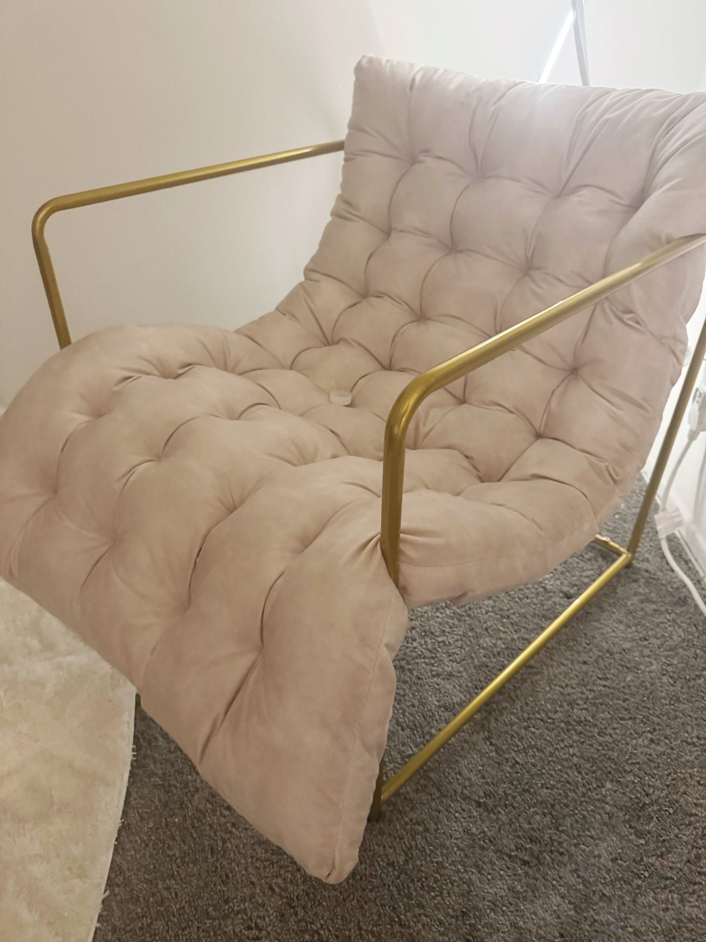 I just bought this chair a few months ago, but I have to move for work no ripped tears or stains holes up to 300 pounds. Very cool modern style.