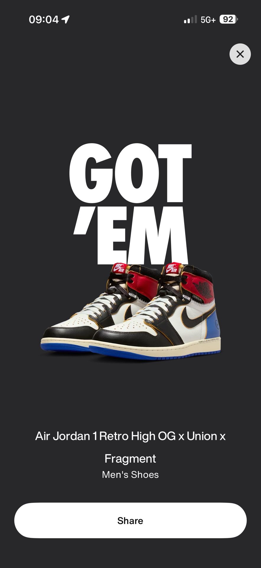 Jordan 1 high Jordan X Fragment X union collab Size 9.5