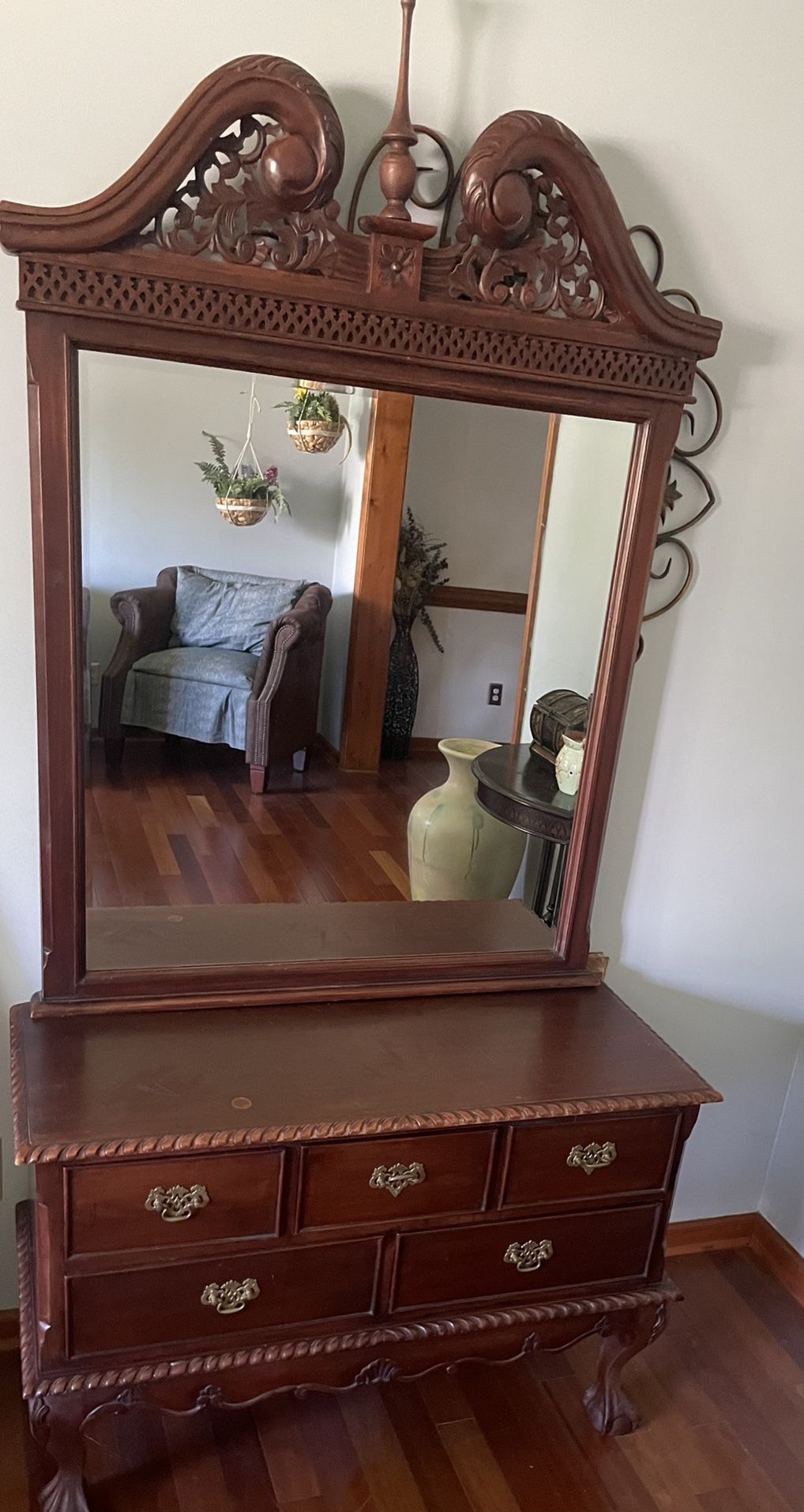 Has minor scratches and water mark. The “crack/split” has been there since we bought it, it is superficial or more a characteristic of the wood.