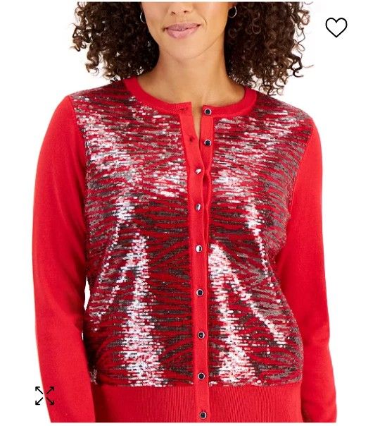 Gorgeous, new and fancy red sequin cardigan. Women's size Large. Still in the original packaging, tags & bagged. Macy's price: $59 Me: $25 cash only please. Normal Heights pick up 92116