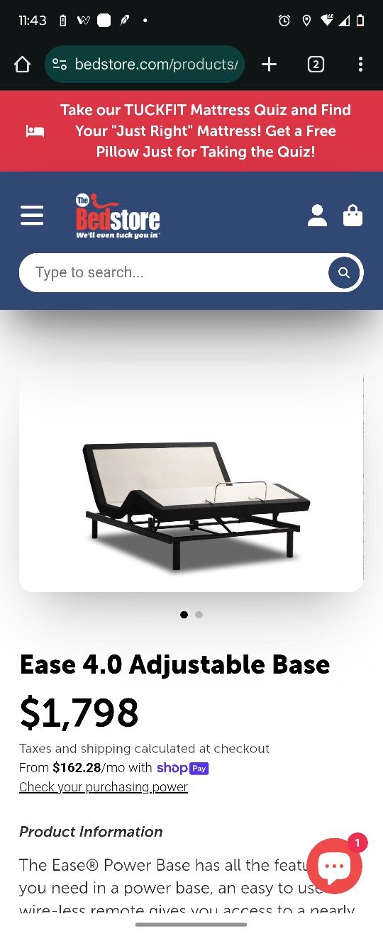 Had for a less than a year bed was too big sold bed just have base it's a king ease adjustable base.500 obo can help with delivery just ask