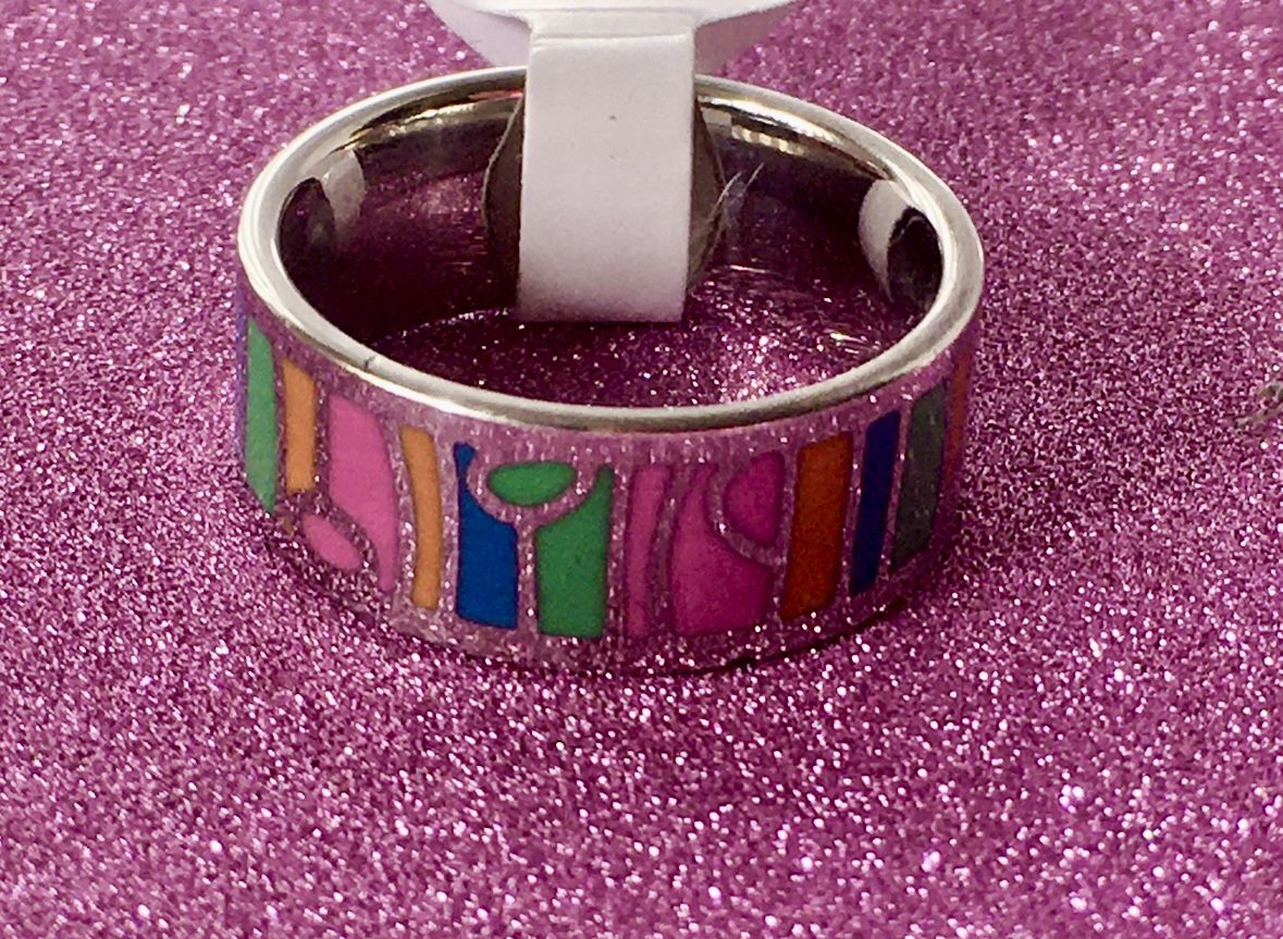 Unisex Stainless Steel Ring, Silver/Multicolored Pattern. Size 8. NWT. (8804) #ring #stainlesssteelring #jewelry #accessories #silverring