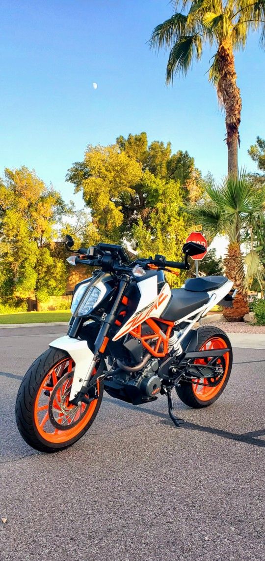 This is a nearly mint condition 2020 KTM Duke 390 that has been meticulously maintained and only adult ridden. These 390s are absolute rippers when done right and I affectionately refer to it as my "adult grom." Don't let that fool you, this baby has no issue hitting 100+ with my 250lb self on it. This bike makes liter bikes and 600's cry in the corners with its torque-filled single cylinder engine and incredible slipper clutch. Has awesome TFT display screen and handlebar controls which allow you to customize your ride settings to your preference. You can chose from ride modes such as Road, Off-Road, Supermoto, etc. And control your ABS setup and traction control for each individual wheel. (Awesome Brembo brakes) You can even Bluetooth connect your phone and control your music through the handlebar buttons (which are back-lit like a MacBook keyboard) or even push navigation to the display through the KTM Ride app. Has Aftermarket break-away, Duke390 brake and clutch levers that are adjustable in regards to both lever length and bar proximity. (Fully dual-adjustable) Has Aftermarket custom rear grab handles that also act as sliders, custom exhaust bracket with slider attachment, debaffled exhaust that is still pretty quiet but sounds a lot nicer than stock. Has the most expensive aftermarket air filtration system available on the market for this model. (BMC) Aftermarket RC tail-tidy (rear fender eliminator) Aftermarket bar-end mirrors. Also has a FuelX auto-tuner, which automatically adjusts and tunes the ECU for absolutely any modification that you may do to the bike. (Exhaust mods, air mods, etc.) This also solves the lean running issue that can often be found in this generation of Dukes. It comes with both sets of original keys, the original key replacement card. Just had full service within the last 500 miles where the primary drain plug, primary oil screen, secondary drain plug, secondary oil screen, oil filter, and all relevant o-rings were replaced with brand new OEM KTM parts and oil was changed with OEM Motorex 10w 50 fully synthetic Power Synt oil from Switzerland. Also got a brand new NGK Iridium sparkplug. Brake pads and tires have tons of life in them. Asking $4699. Clean and clear AZ title in my name. Cash in hand and valid MC endorsement required for any test ride.
