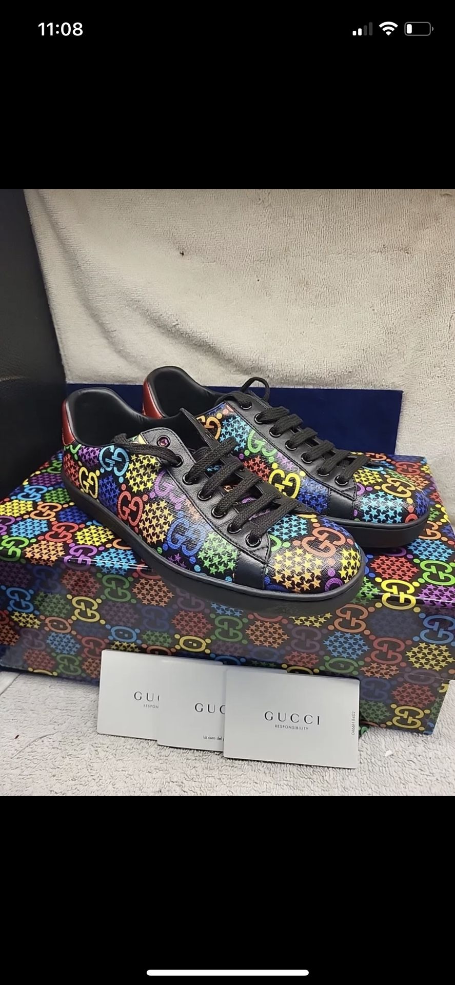 Gucci Multi GG Rombi Monogram Psychedelic Ace Lace up Sneakers Sz 5 CIB