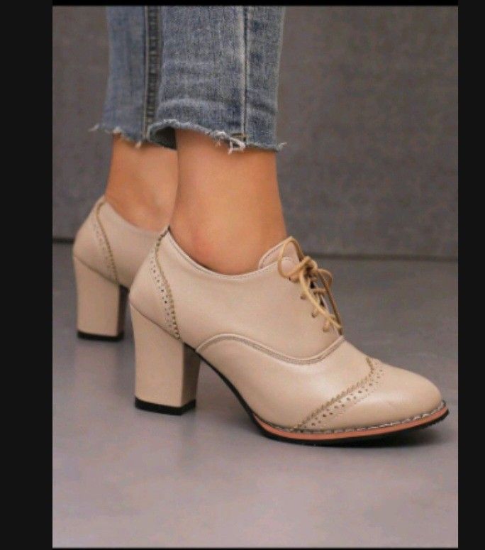 New With Tags High-quality Brand Woman's Oxford Style Chunky Pumps Low Heels Size 11 Khaki Color $40
