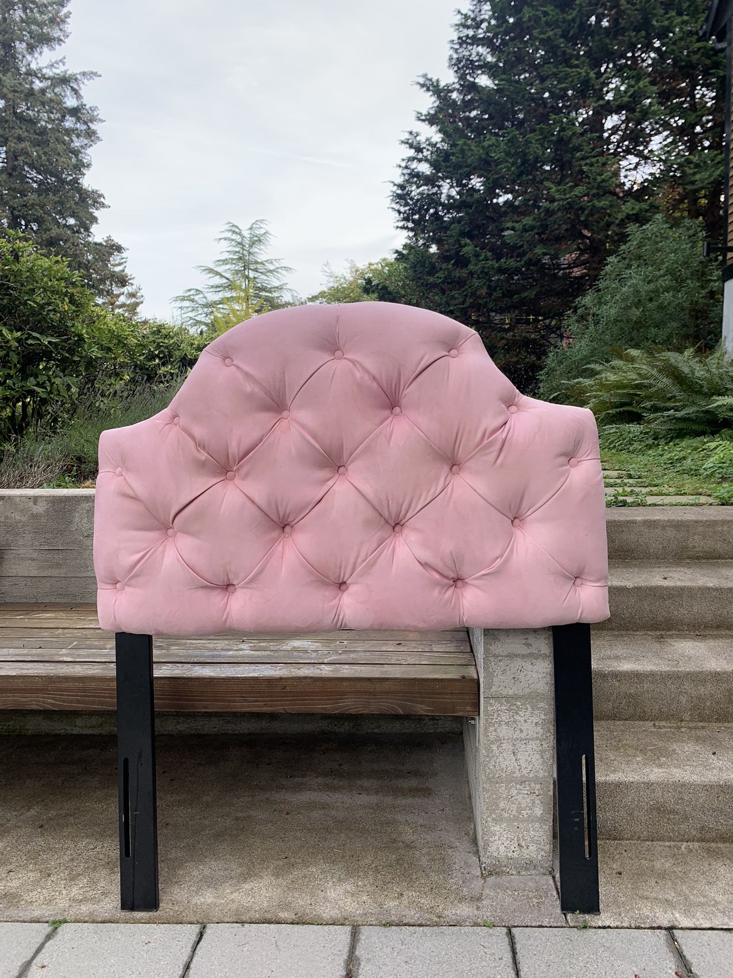 Pink tufted upholstered headboard. Twin bed. Suede like fabric. 42 wide & 50 tall