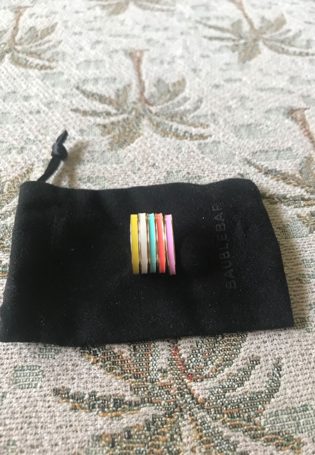 Brand New Colorful Enamel Set of 5 Rings from Bauble Bar.Size 7.Tried On Not Worn.Good condition. Cash Only Please.