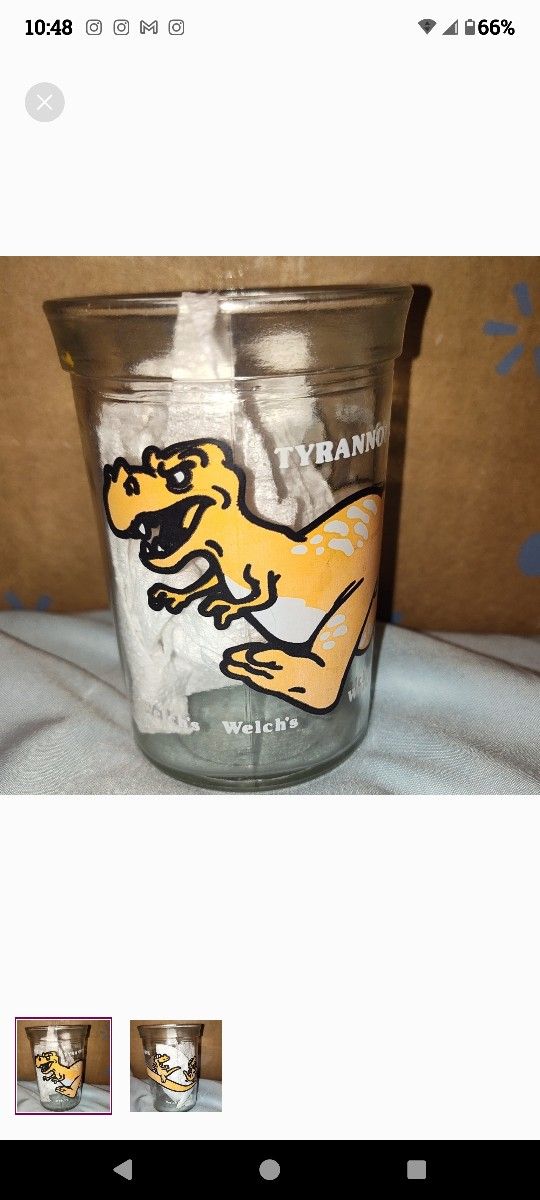 Vintage Welch's Jelly Jar Glass Tyrannosaurus Rex T-Rex 1988 Dinosaur Juice. Co