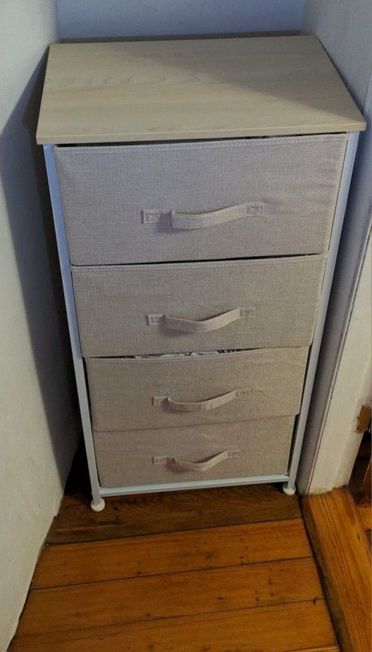 Nightstand, 4 Drawer Dresser Size: 11.8"D x 17.7"W x 37.4"H (4 Drawers) Material: Fabric, Metal, Wood Finish Type: Wood Product Dimensions: 11.8"D x 17.7"W x 37.4"H Number of Drawers: 4 【Spacious 4-Drawer Storage】 Features four deep fabric drawers and a durable wooden top, providing ample space for clothes, accessories, books, and household essentials while keeping your space neat and organized. 【Sturdy & Durable Construction】 Built with a strong steel frame and water-resistant MDF wooden top, this tall nightstand supports up to 44 lbs. Breathable, non-toxic fabric drawers slide smoothly for easy daily use.