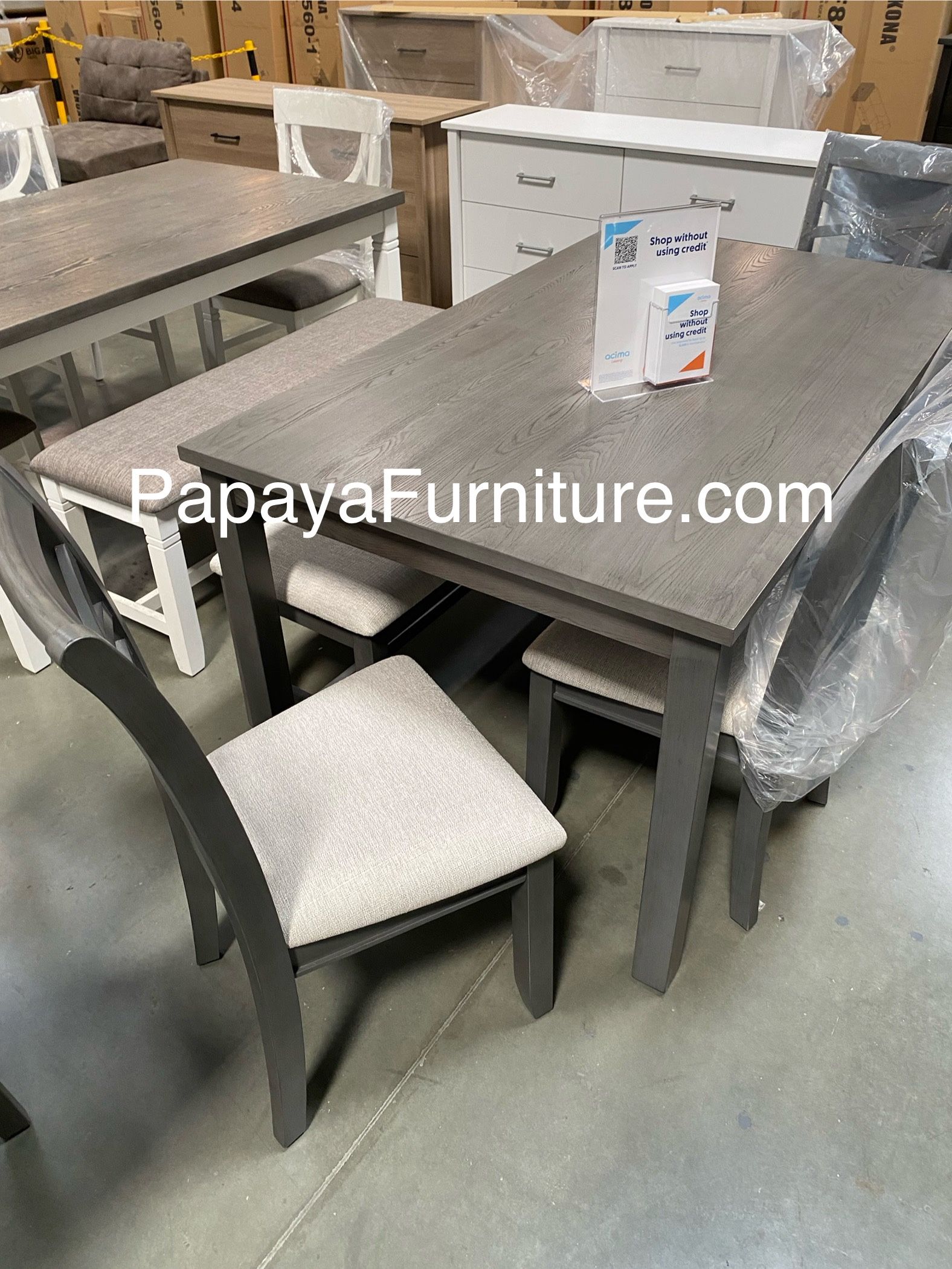 Super Deal! 6-Pcs Dining Set, Wooden Dining Set, 4 Chairs , 1 bench with a Table, Kitchen Furniture, Casual dining room set, Matching Dining Chairs Set. Set Includes: 1 of Table (60" x 36" x 30" H) 4 of Chair (19" x 22" x 38" H) 1 of Bench (50" x 16" x 19" H) Material: Solid Wood & Veneer / Cushion Full assembly is required F2623