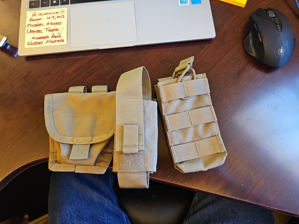 Got 3 soft pouches, 1 double cuff, 1 magazine, flashlight or OC pouch, and 1 possible AR15 magazine pouch. All have molle straps on back. Can pickup in Tucson off Countryclub and Prince rd. M-f. Price is for all 3.