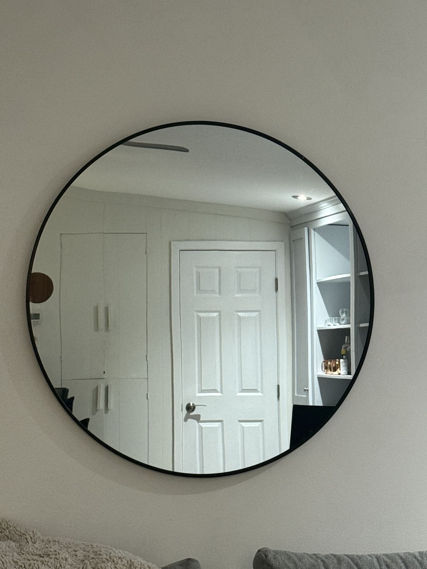 Beautiful large round mirror with black edges. Looks new.