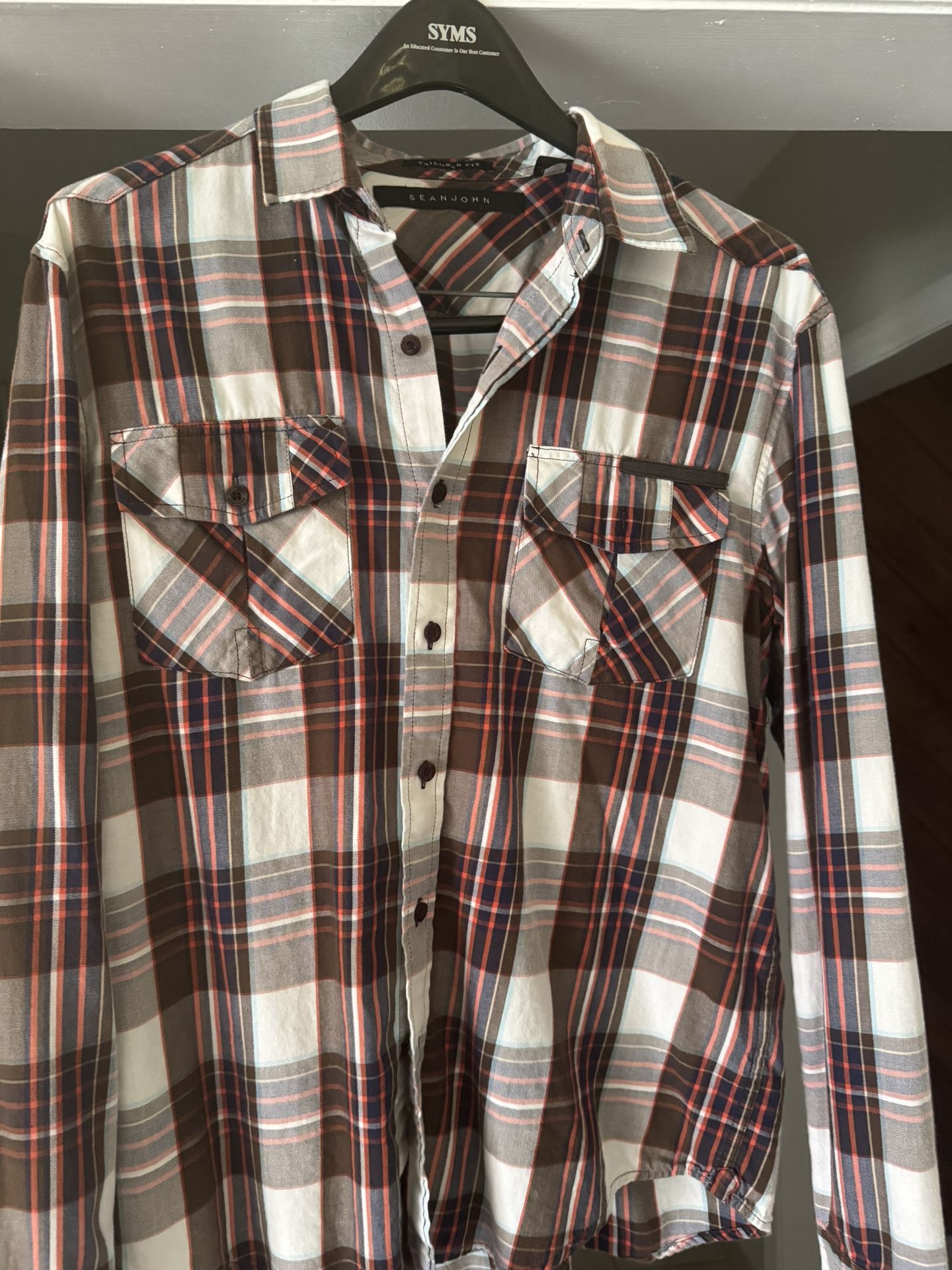 Sean John plaid ls tailored fit shirt Medium Brown/beige/blue/orange Very good condition