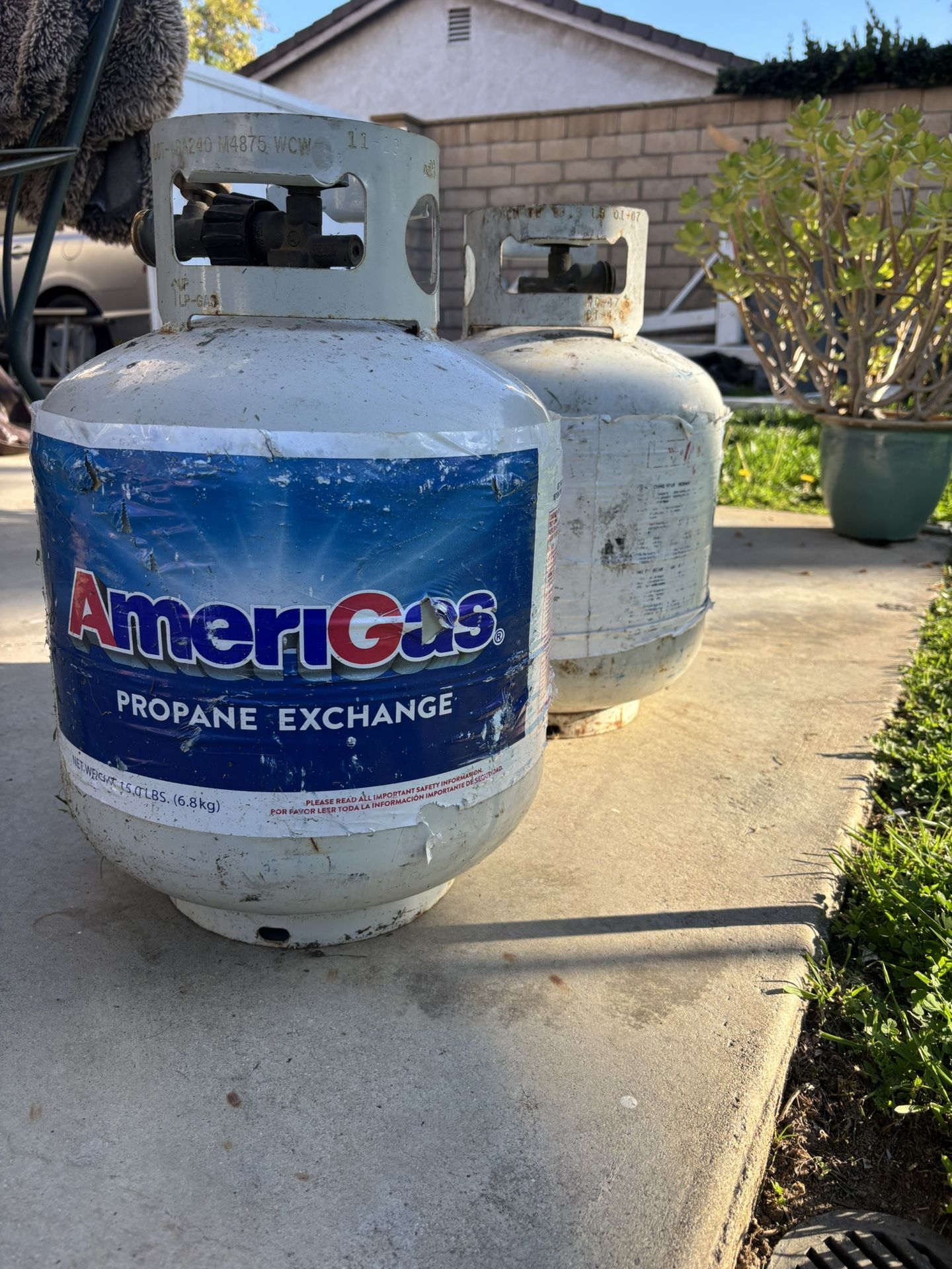 2 propane tanks One is full, one is empty.
