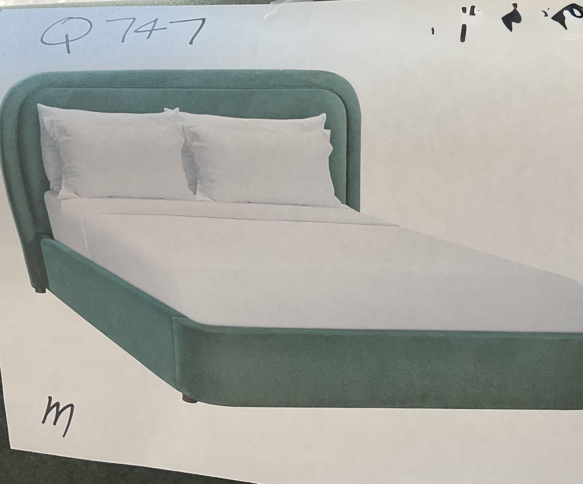 Selling Furniture Matkets Sample as shown at discounted price. Bed includes headboard footboard siderails and slats. New Dark green Queen size fabric upholstered platform bed
