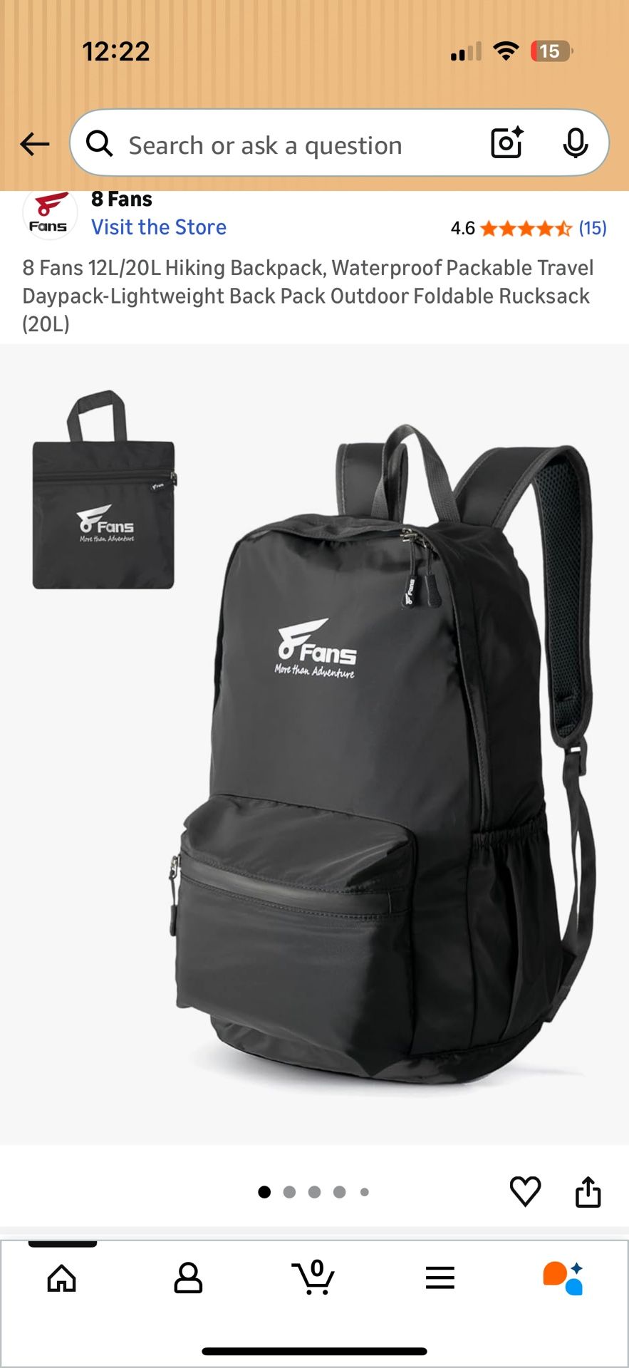 BRAND NEW 8 Fans 12L/20L Hiking Backpack, Waterproof Packable Travel Daypack-Lightweight Back Pack Outdoor Foldable Rucksack (20L)