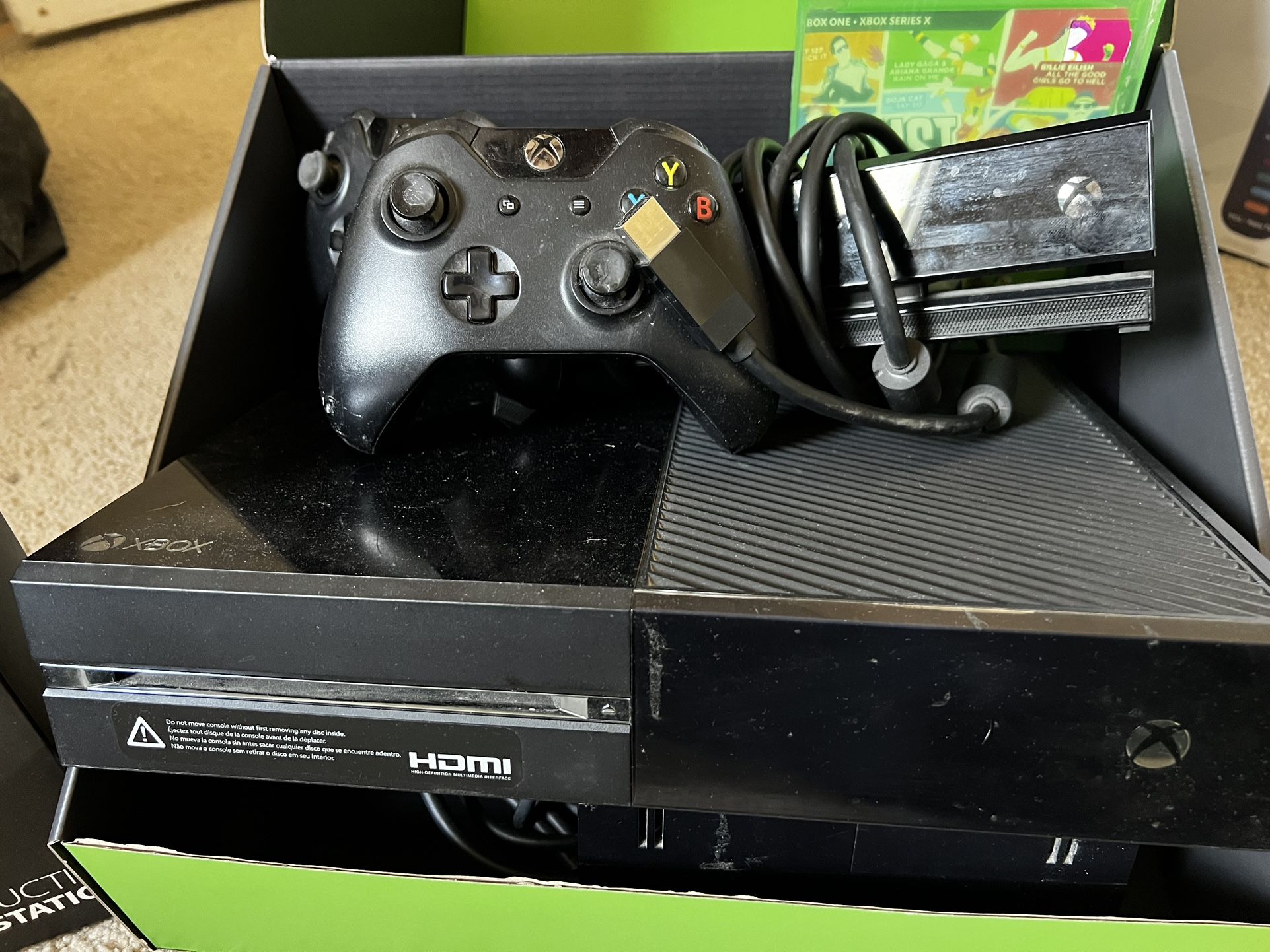Xbox One 500GB game console. Will come with 2 controllers, Kinect, Dual charging station, and Just Dance 2021 game. Still in real good condition.