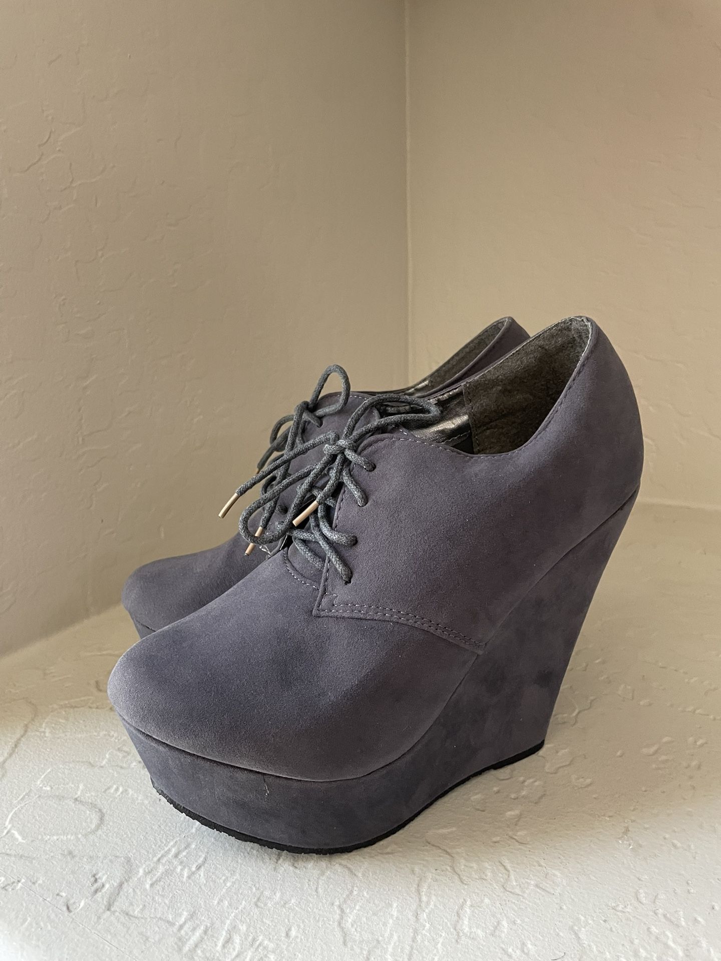 High heels women, wedges Size 7.5 Brand new women’s pumps with laces grey