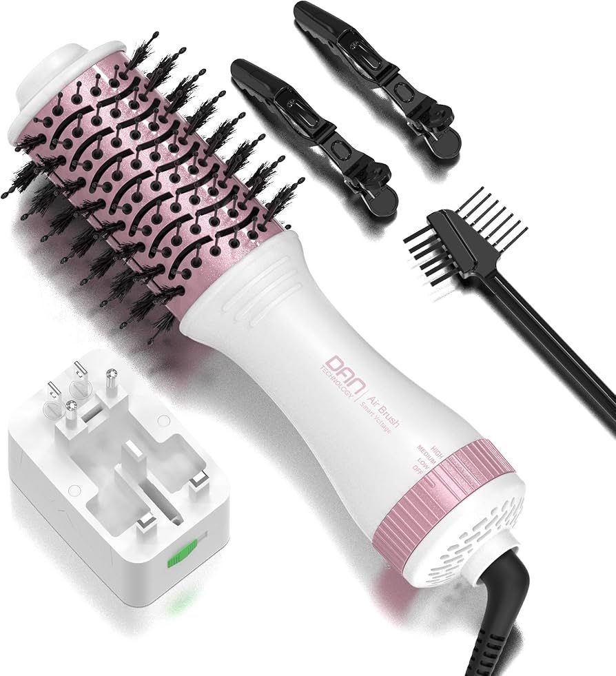 Brand New DAN Auto Dual Voltage Hair Dryer Brush(100V-240V),Travel Hair Dryer Brush with Multi-Function Plug Adapter,One Step Blow Dryer Brush and Styler. Comes with a stylish travel bag, 2 clips, cleaning brush and multi-function plug. Porch pick up in South Chandler. McQueen and Chandler Heights.