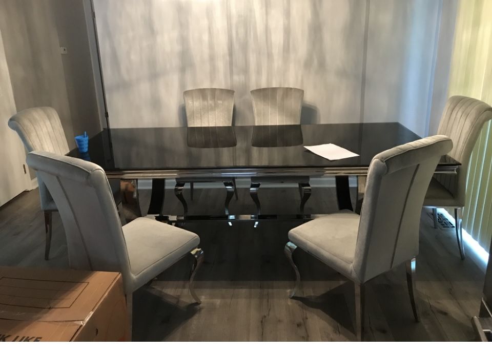 Make an offer! Barely used excellent like new condition. Pet free, smoke free home. Only selling because we are redecorating. Table top is black Glass and frame is chrome