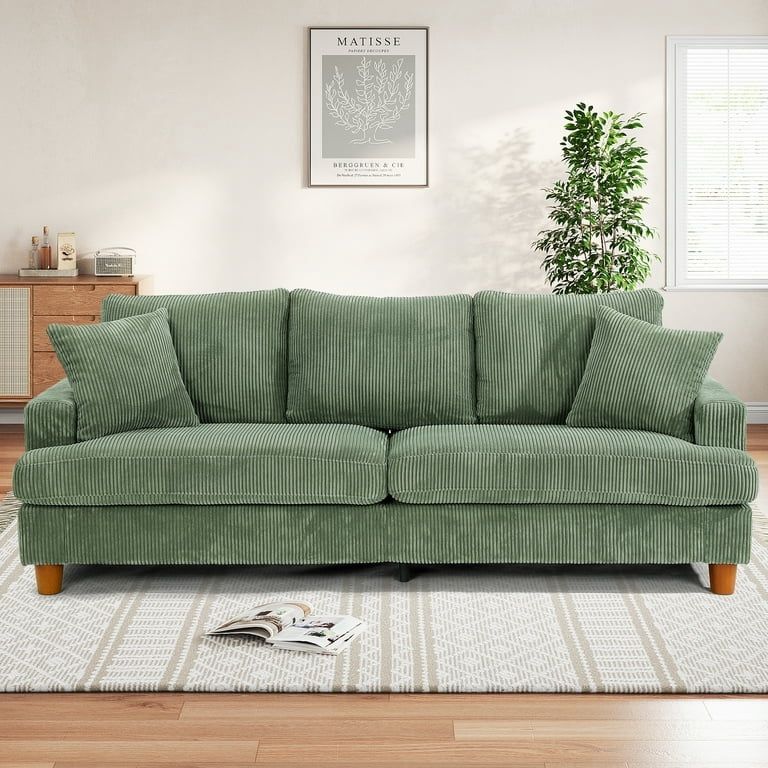 New-87" Corduroy Sofa,3 Seater Sofa with Extra Deep Seats,Neche Comfy Upholstered Couch for Living Room,2 Pillows,Green
