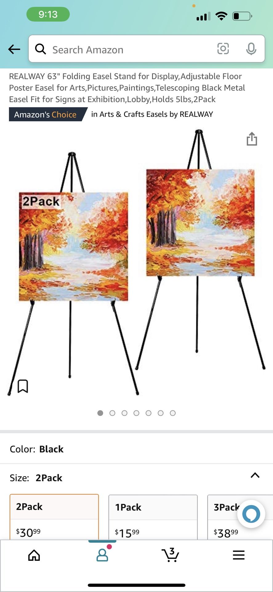 REALWAY 63" Folding Easel Stand for Display,Adjustable Floor Poster Easel for Arts,Pictures,Paintings,Telescoping Black Metal Easel Fit for Signs at Exhibition,Lobby,Holds 5lbs,2Pack