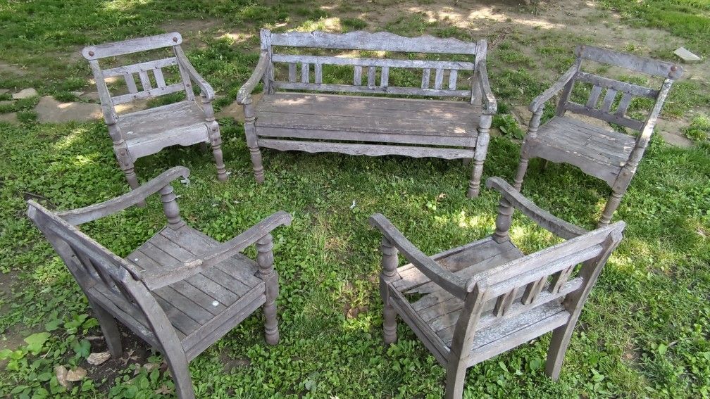 Antique Rustic Solid Wood Chair & Bench Patio Set (5-piece)