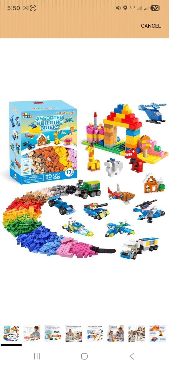 FUN LITTLE TOYS 1100 PCS Building Blocks for Kids 6-12, Creative Bulk Building Bricks Set for Open-Ended Play, 147 Shapes 17 Colors, Value Pack Compatible with Standard Baseplates