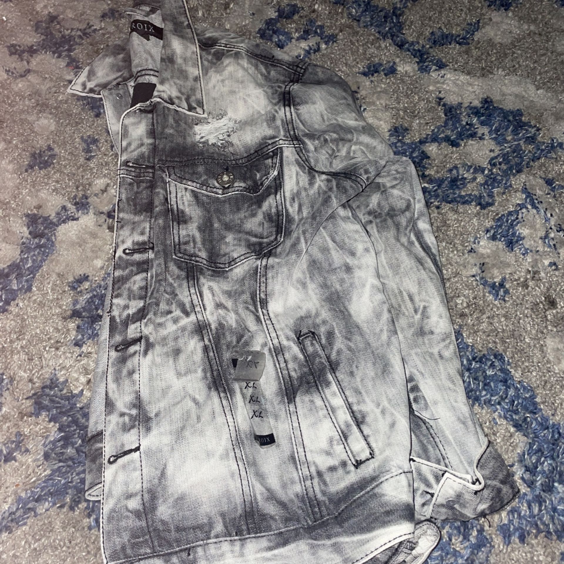 Gray and black denim jacket with the rips extra large