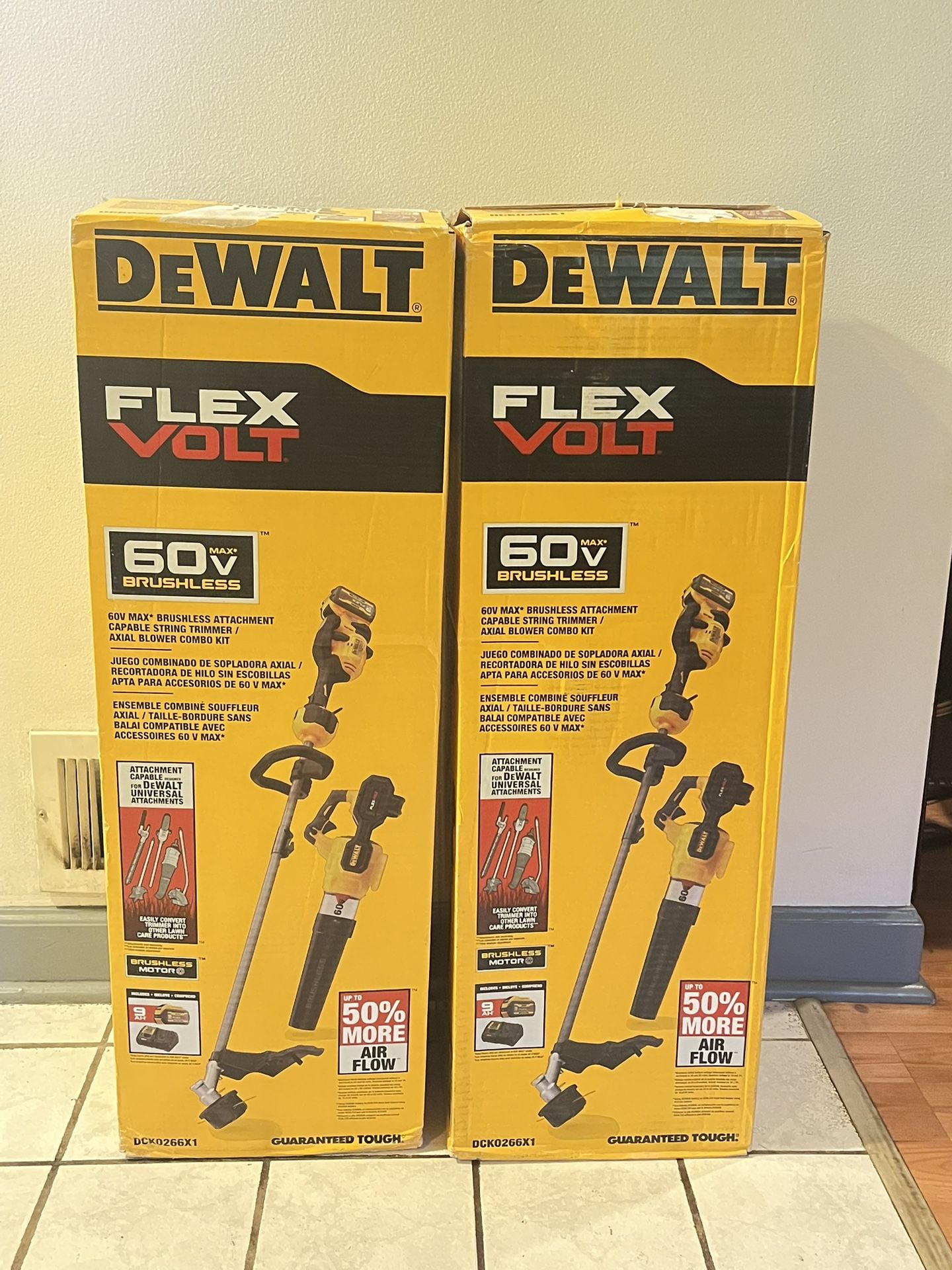 Dewalt brand new 60v 2-tools combo kit with 17” trimmer with attachment capabilities leaf blower 9ah battery and charger $450 each kit