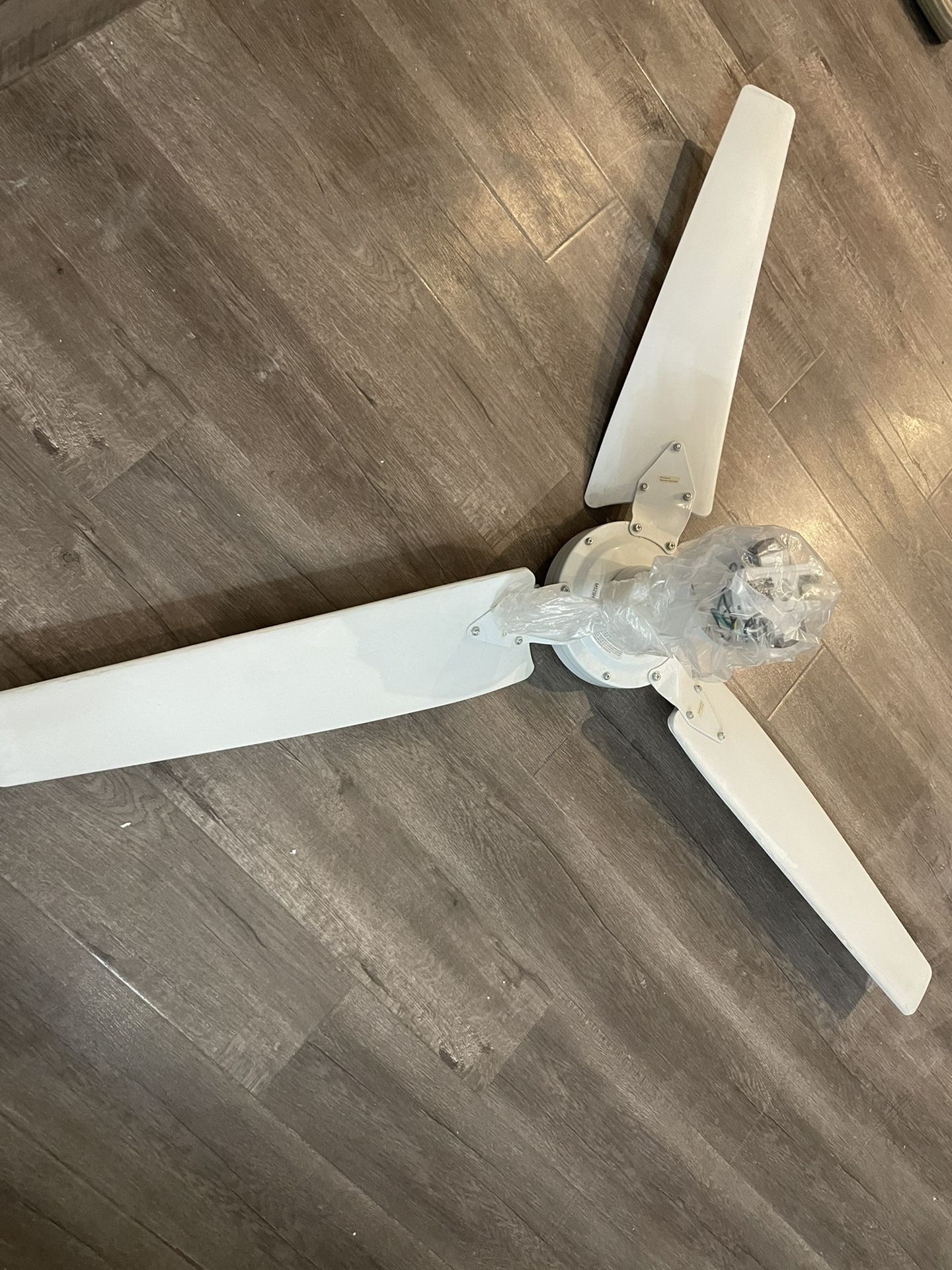 Industrial ceiling fan with remote control, works perfectly, strong wind. Each blade to the center is 30”, overall width is 52” Pick up at 91316