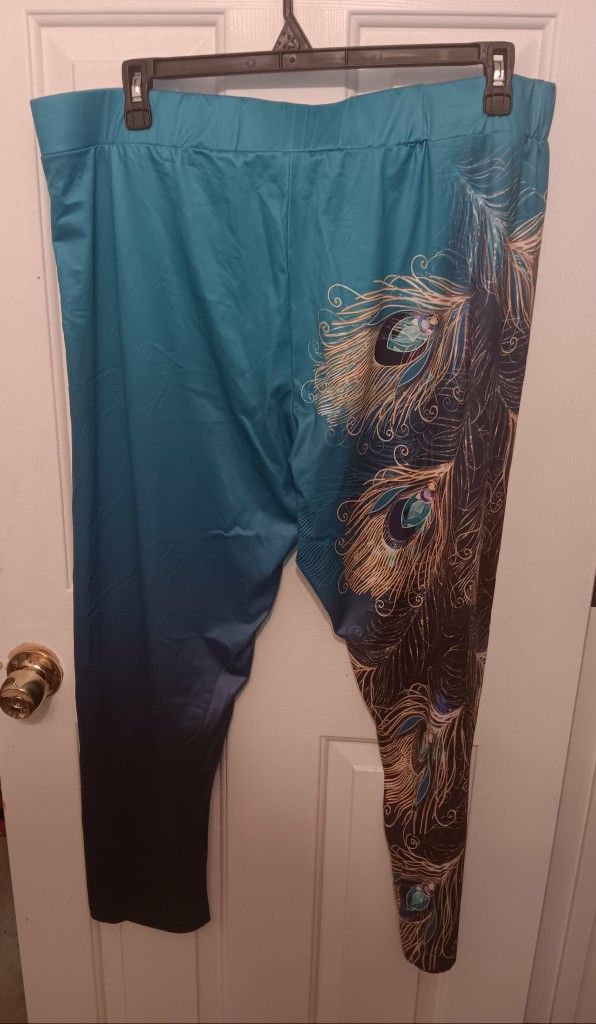 SE HABLA ESPAÑOL. Beautiful Peacock Print Plus Leggings. Vibrant and Playful! Can be paired with the Matching Leggings I'm also selling. MEASURES 24 inches across so its 48 inches around the hip area and fabric is stretchable. BRAND NEW still in the plastic. Local MeetUp for Delivery.
